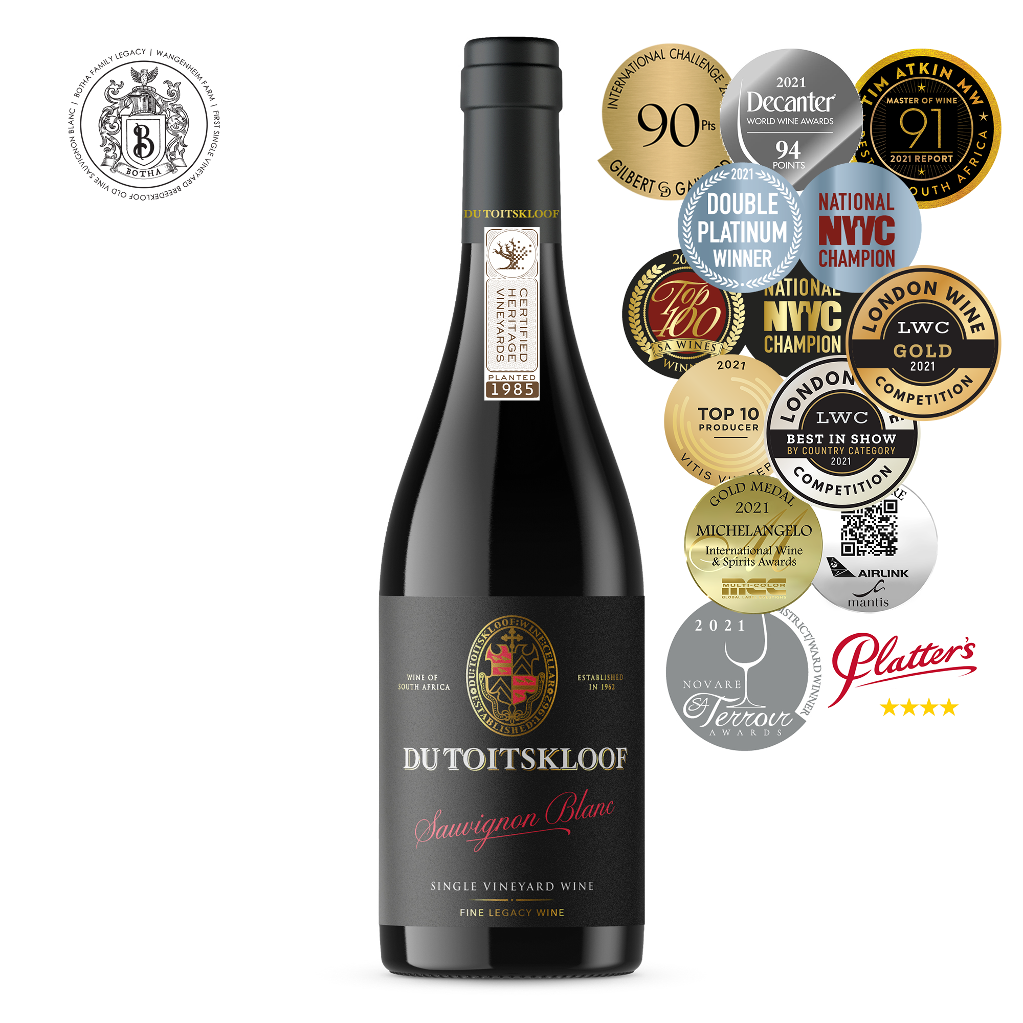 Du Toitskloof Old Vine Sauvignon Blanc 2020 was announced as the Breedekloof Area Winner for Sauvignon Blanc in the latest Novare SA Terroir Wine Awards.